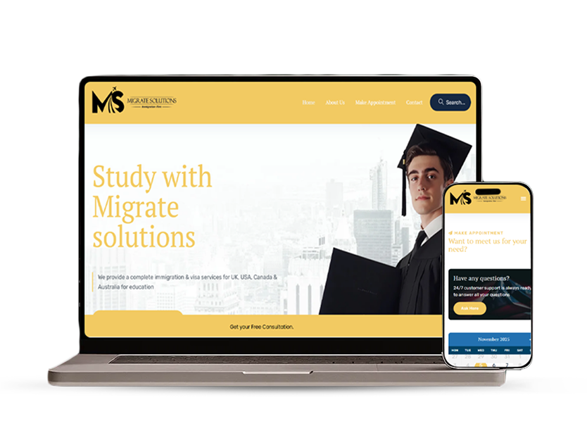 We developed a modern, informative website showcasing services, building trust, simplifying user journeys, and helping students easily connect with Migrate Solutions.
